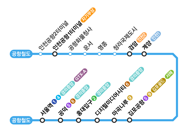 - 여러 정차역을 경유하며 서울 도심과 김포공항, 검암, 영종 지역까지 이동할 수 있어 실용성이 높습니다. 요금도 비교적 저렴해 일상적인 공항 접근이나 중간 지역 이용자에게 유리합니다.