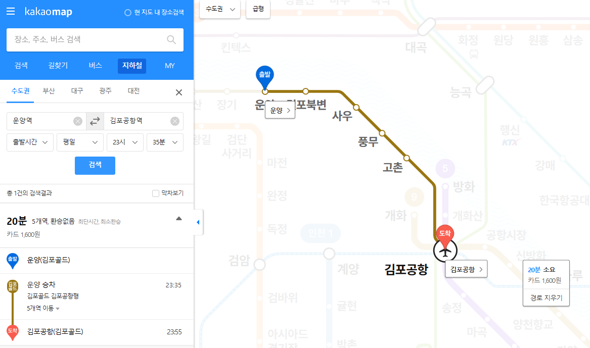 - 막차: 양촌역 밤 12시 26분 / 김포공항역 밤 12시 29분
