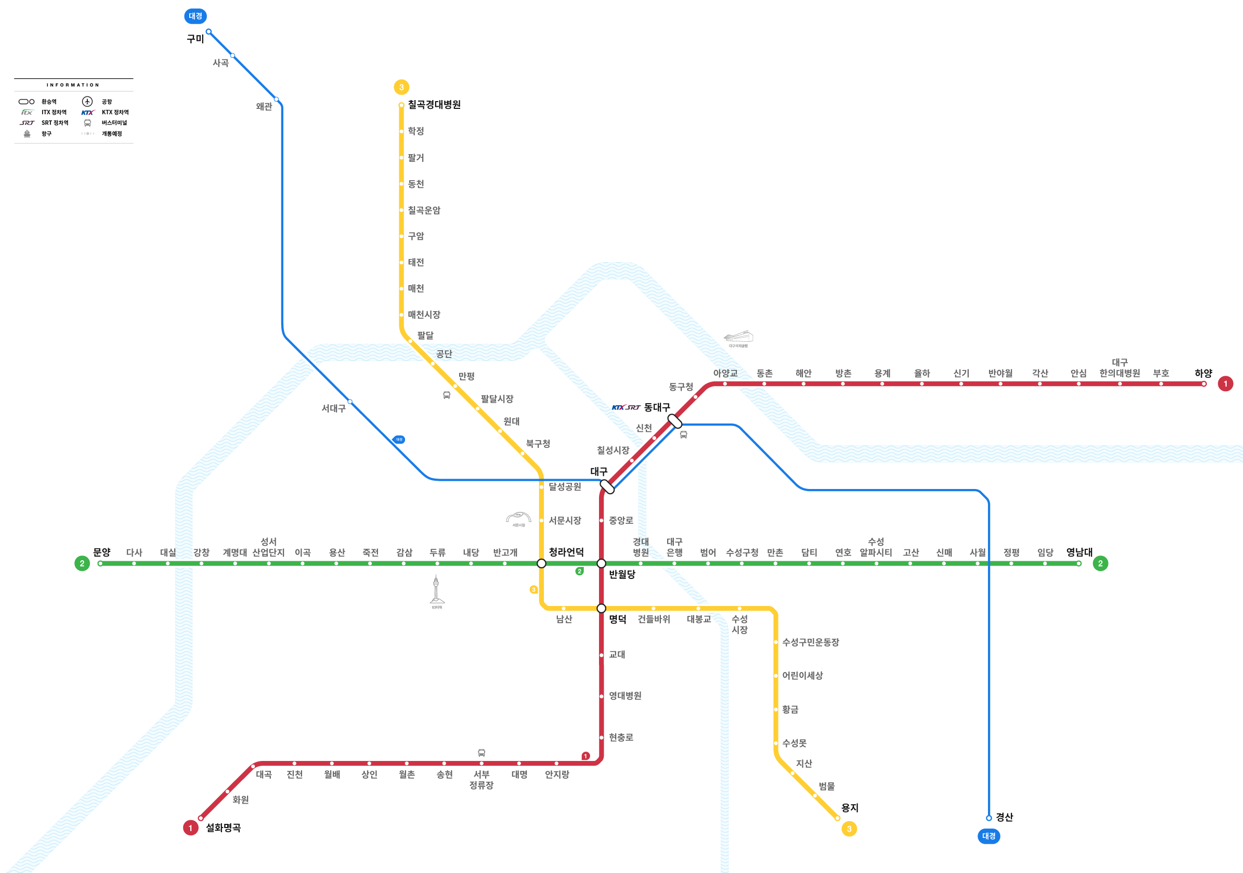 ✅️ 대구 지하철은 1호선, 2호선, 3호선 총 3개의 노선으로 운영되며, 막차 시간은 노선 방향과 출발역에 따라 차이가 있습니다.