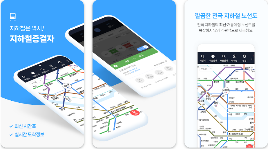 - 지하철종결자’ 앱을 이용하면 다음 열차 도착 시간은 물론, 열차의 현재 위치나 혼잡도까지 확인할 수 있어요. 이동 계획을 세우기 편리하고, 시간에 맞춰 움직여야 할 때 매우 유용합니다.
