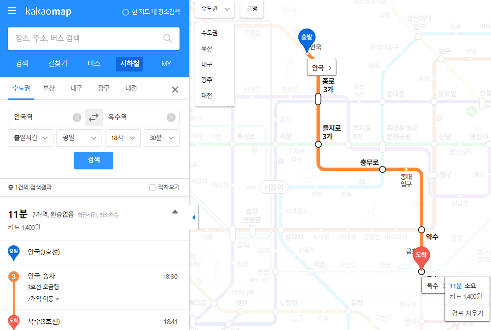 - 종로3가역: 1, 3, 5호선이 교차하는 중심 환승역