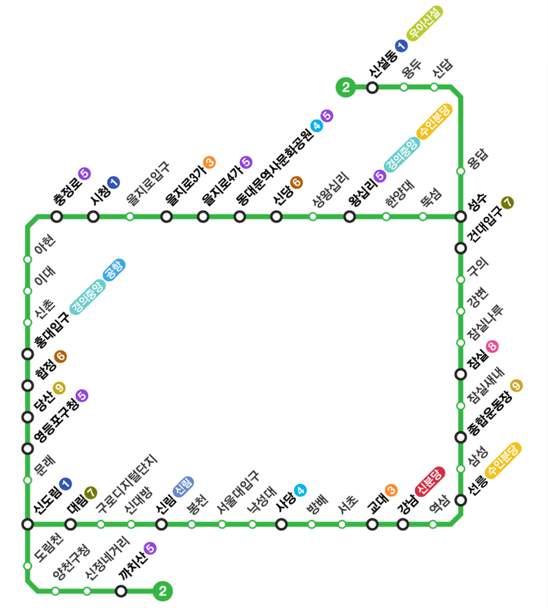 🚉 서울 지하철 2호선 노선도 안내 (환승역)