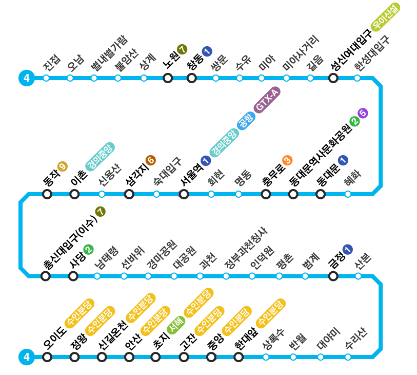 💡 4호선은 다양한 환승역과 주요 생활권을 연결하기 때문에, 사전에 노선도와 정차역 정보를 확인하면 더 빠르고 효율적인 이동이 가능합니다.