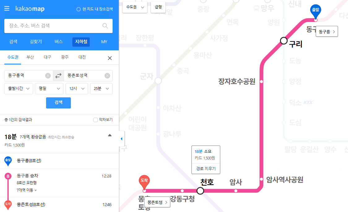 🚉 서울 지하철 8호선 노선도 살펴보기
