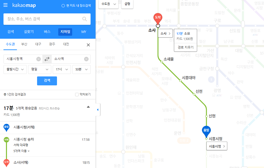 - 출퇴근 시간대인 오전 7시~9시, 오후 5시~7시 사이에는 많은 승객들이 몰려 혼잡도가 높아집니다. 여유롭게 이동하고 싶다면 이 시간대를 피해 이용하는 것이 좋습니다. 특히 소사, 시흥시청과 같은 환승역은 더욱 혼잡하니 참고하세요.