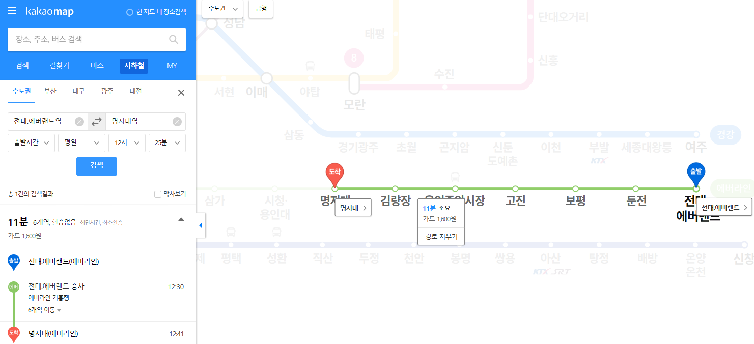 - 기흥역에서 에버랜드역까지: 약 30분 소요